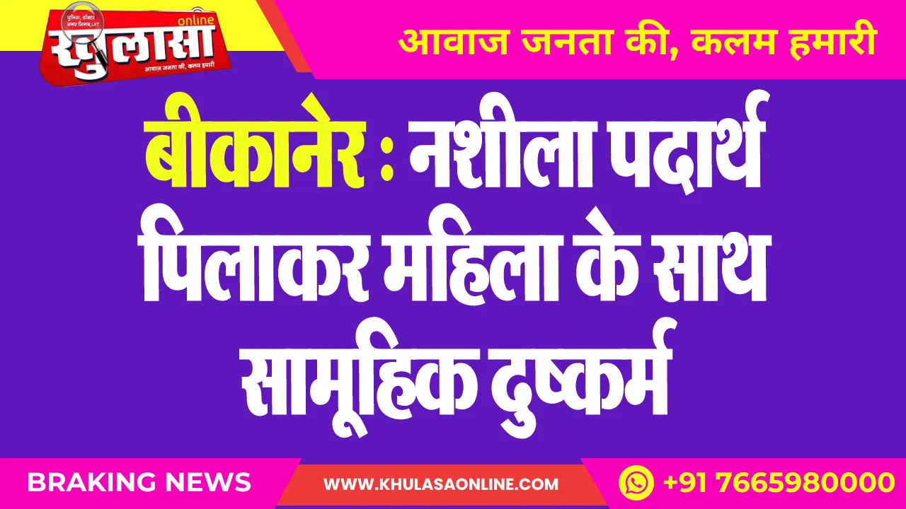 बीकानेर : नशीला पदार्थ पिलाकर महिला के साथ सामूहिक दुष्कर्म