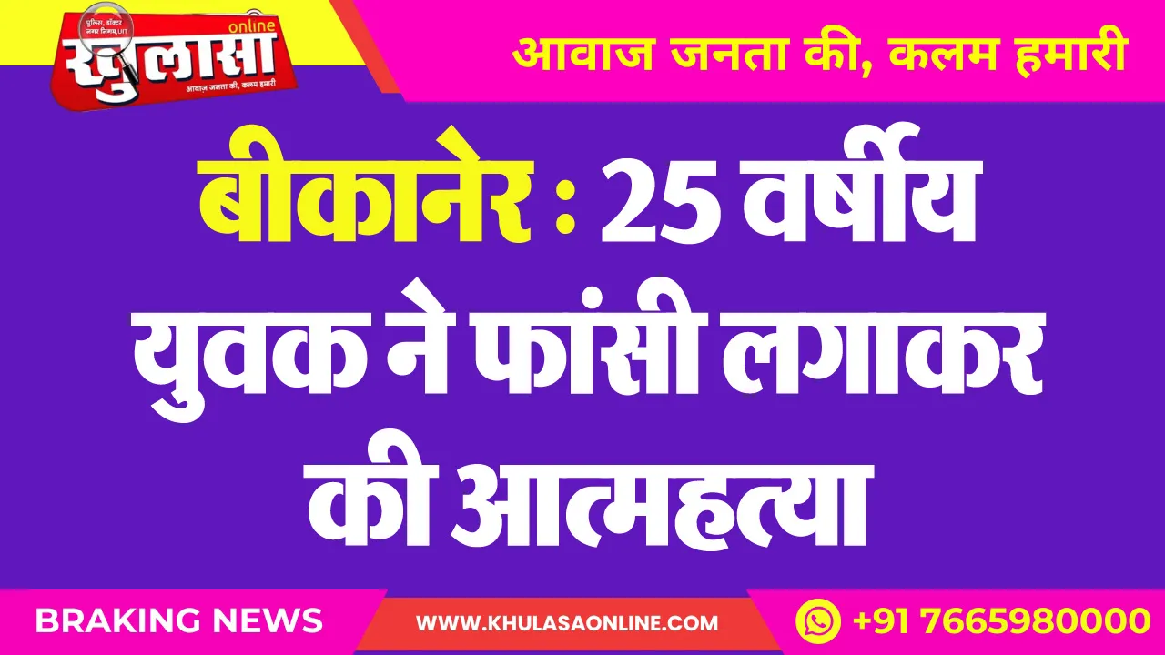 बीकानेर : 25 वर्षीय युवक ने फांसी लगाकर की आत्महत्या