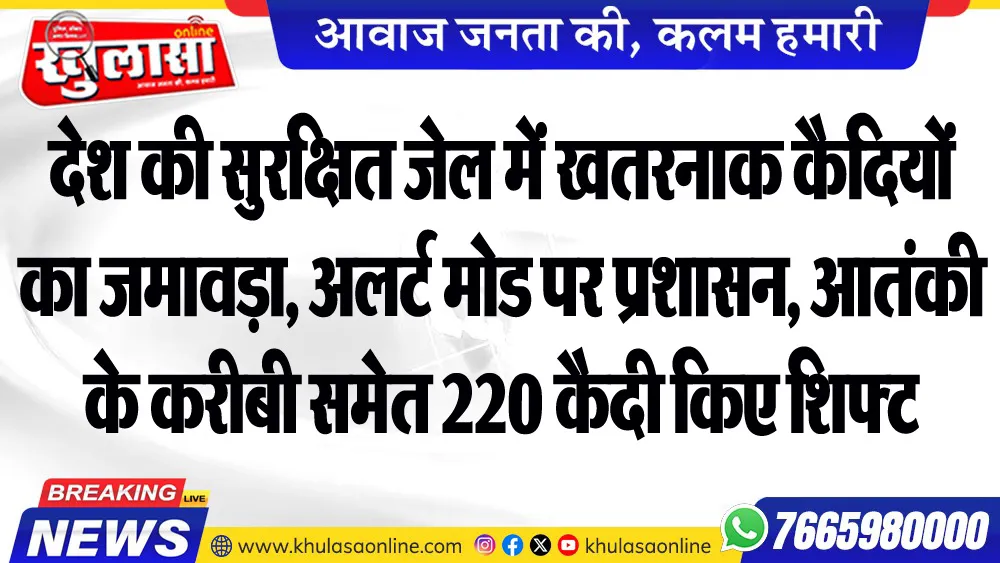देश की सुरक्षित जेल में खतरनाक कैदियों का जमावड़ा, अलर्ट मोड पर प्रशासन, आतंकी के करीबी समेत 220 कैदी किए शिफ्ट