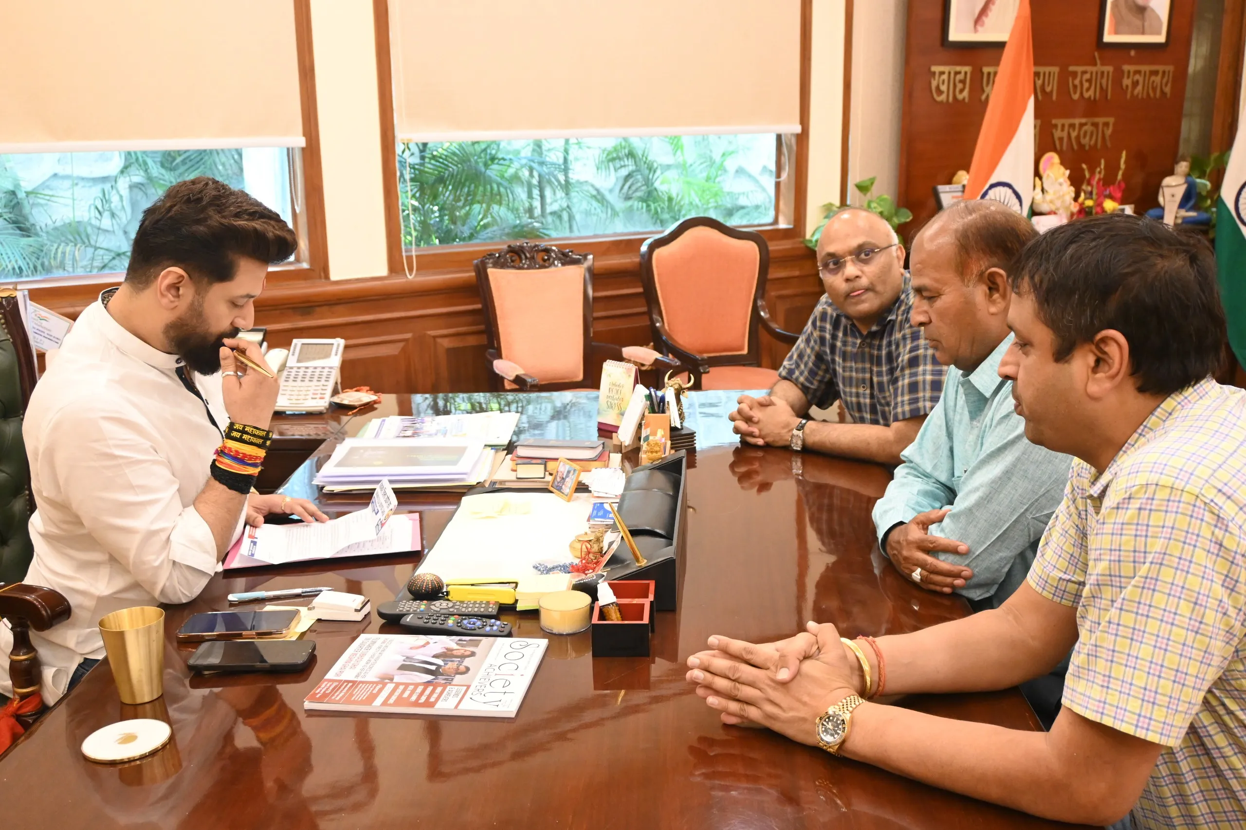 उद्योग मंत्री चिराग पासवान को दिया बीकानेर आने का न्योता, बीकानेर जिला उद्योग संघ के हनुमान झंवर एवं सुनील बलदेवा ने की पासवान से चर्चा
