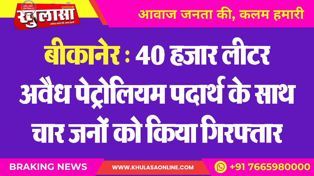 बीकानेर : 40 हजार लीटर अवैध पेट्रोलियम पदार्थ के साथ चार जनों को किया गिरफ्तार