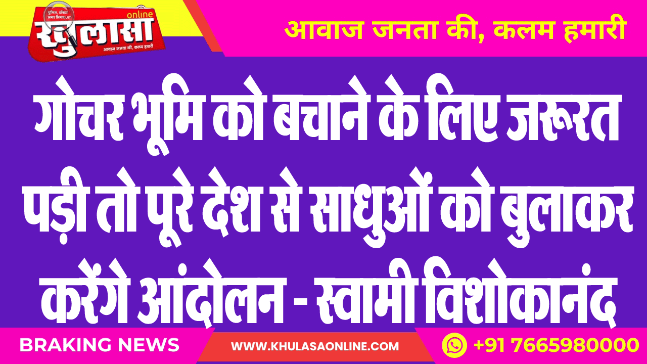 गोचर भूमि को बचाने के लिए जरूरत पड़ी तो पूरे देश से साधुओं को बुलाकर करेंगे आंदोलन – स्वामी विशोकानंद