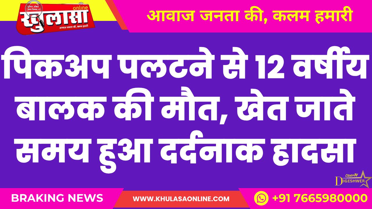 पिकअप पलटने से 12 वर्षीय बालक की मौत, खेत जाते समय हुआ दर्दनाक हादसा