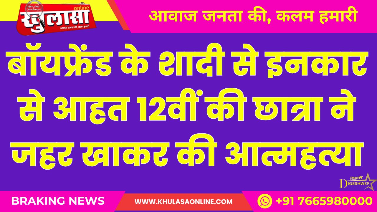 बॉयफ्रेंड के शादी से इनकार से आहत 12वीं की छात्रा ने जहर खाकर की आत्महत्या