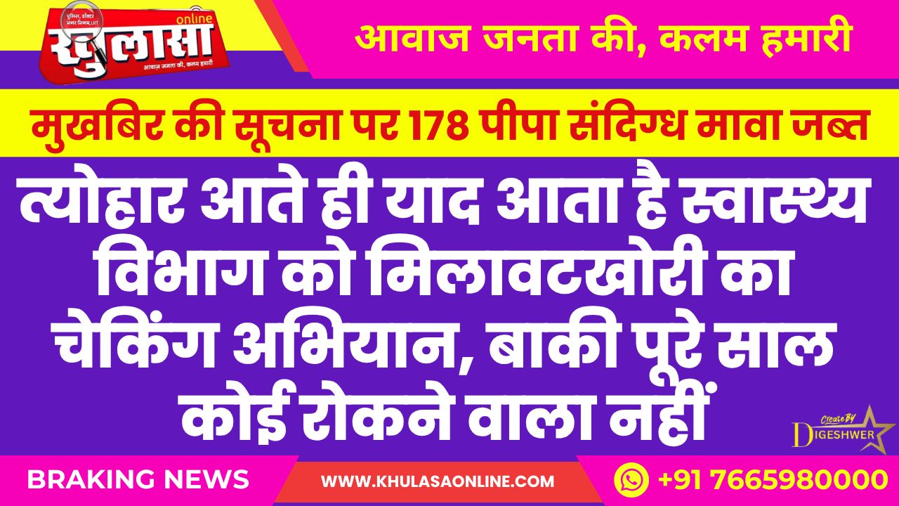 त्योहार आते ही याद आता है स्वास्थ्य विभाग को मिलावटखोरी का चेकिंग अभियान, बाकी पूरे साल कोई रोकने वाला नहीं