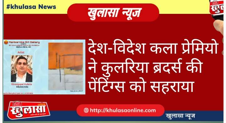 खुलासा न्यूज़ , बीकानेर । बीकानेर के चित्रकार हाल मुम्बई निवासी कुलरिया ब्रदर्स के श्याम सुन्दर कुलरिया ओर श्रीगोपाल कुलरिया की पेंटिंग्स अन्तर्राष्ट्रीय कला प्रदर्शनी में चयनित हुई ओर प्रर्दशन हुई।