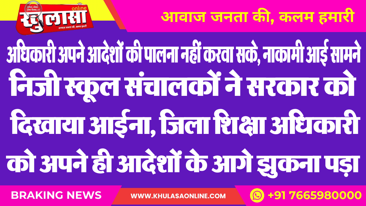 स्कूलें संचालकों ने सरकार को दिखाया आईना, जिला शिक्षा अधिकारी को अपने ही आदेशों के आगे झुकना पड़ा