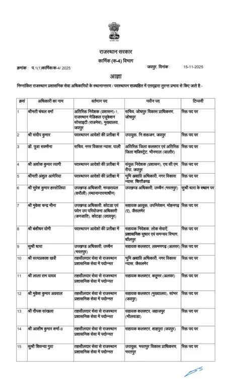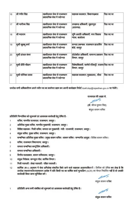 प्रदेश में 22 आरएएस अधिकारियों के हुए तबादलें, देखें सूची