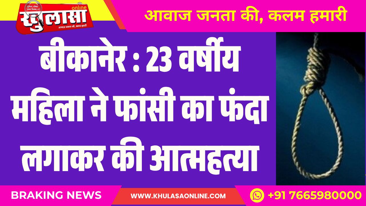 बीकानेर : 23 वर्षीय महिला ने फांसी का फंदा लगाकर की आत्महत्या