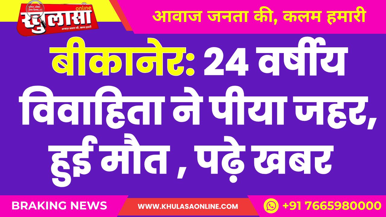 बीकानेर: 24 वर्षीय विवाहिता ने पीया जहर, हुई मौत
