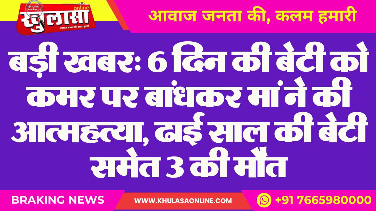 बड़ी खबर: 6 दिन की बेटी को कमर पर बांधकर मां ने की आत्महत्या, ढाई साल की बेटी समेत 3 की मौत