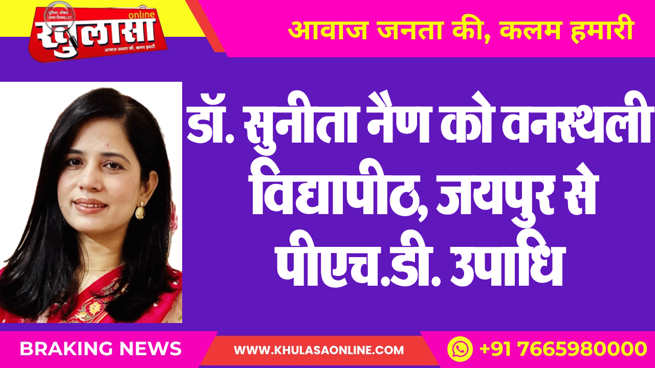 डॉ. सुनीता नैण को वनस्थली विद्यापीठ, जयपुर से पीएच.डी. उपाधि