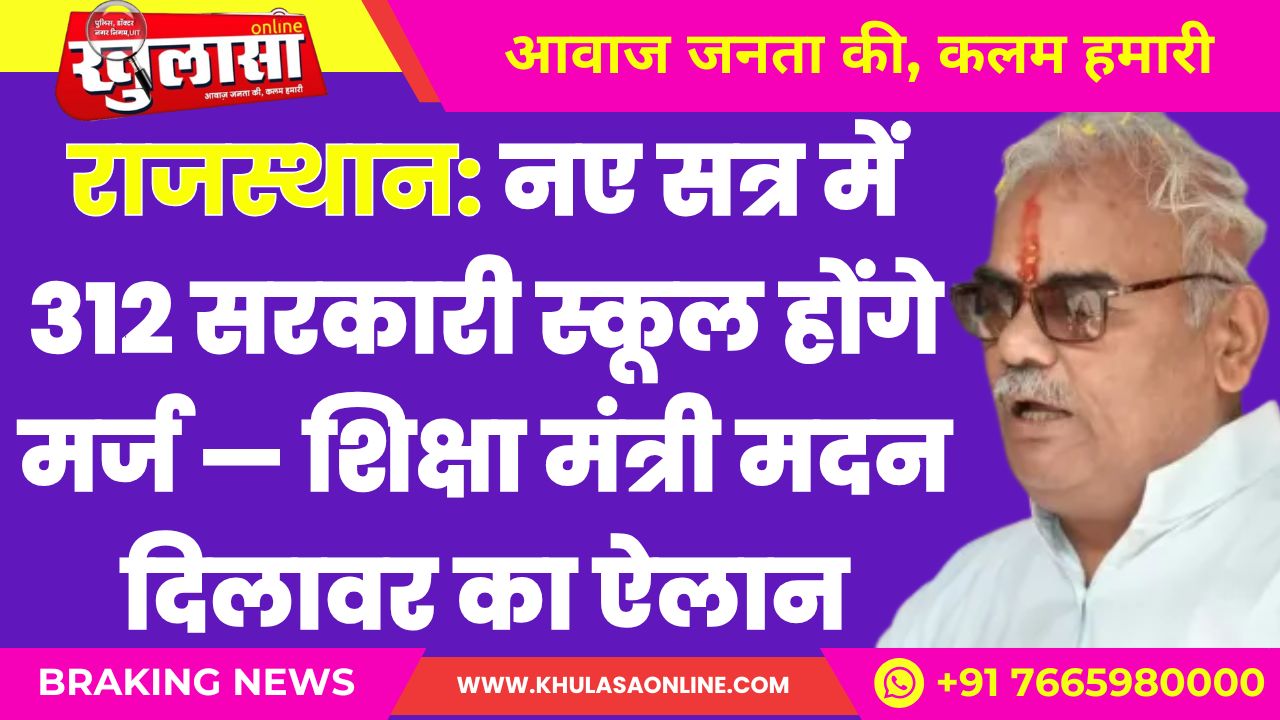 खुलासा न्यूज़, बीकानेर। राजस्थान में अब कम नामांकन वाले सरकारी स्कूलों को एकीकृत (मर्ज) करने की प्रक्रिया शुरू हो गई है। शिक्षा मंत्री मदन दिलावर ने बुधवार को हुई प्रेस कॉन्फ्रेंस में बताया कि नए शैक्षणिक सत्र से 312 स्कूलों को नजदीकी स्कूलों में मर्ज किया जाएगा।
