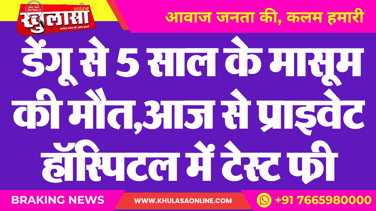 डेंगू से 5 साल के मासूम की मौत,आज से प्राइवेट हॉस्पिटल में टेस्ट फ्री