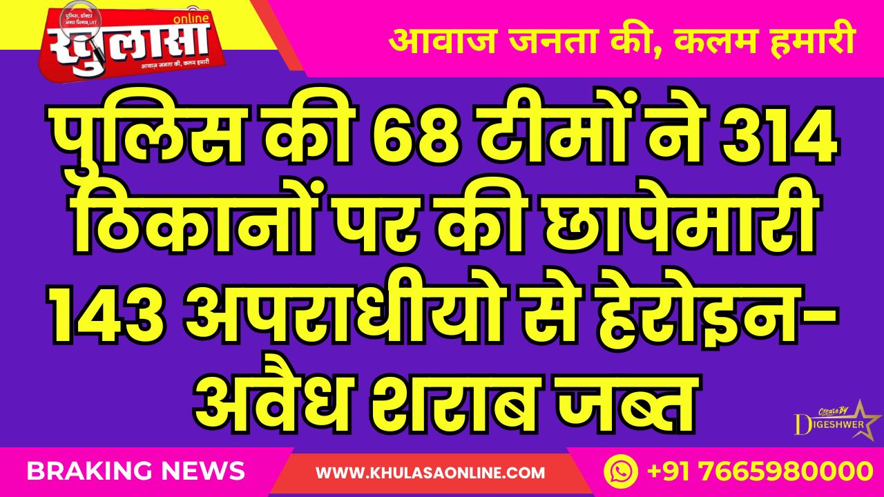 पुलिस की 68 टीमों ने 314 ठिकानों पर की छापेमारी 143 अपराधीयो से हेरोइन-अवैध शराब जब्त