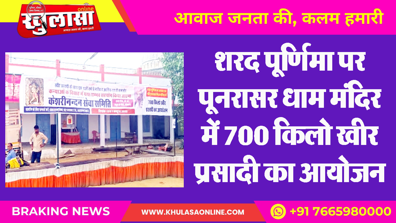 शरद पूर्णिमा पर पूनरासर धाम मंदिर में 700 किलो खीर प्रसादी का आयोजन