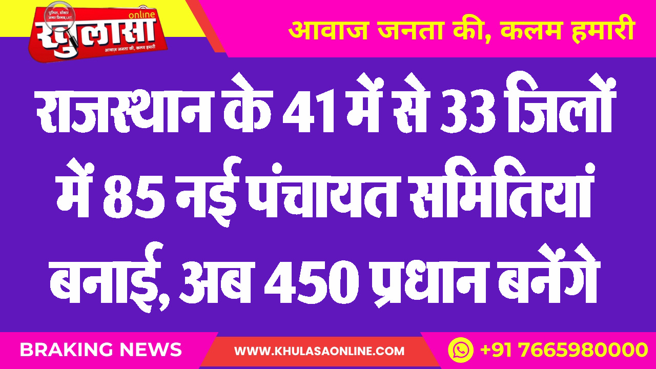 राजस्थान के 41 में से 33 जिलों में 85 नई पंचायत समितियां बनाई, अब 450 प्रधान बनेंगे