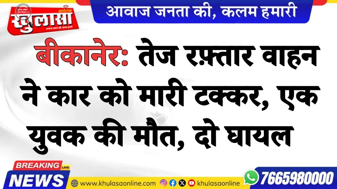 बीकानेर: तेज रफ़्तार वाहन ने कार को मारी टक्कर, एक युवक की मौत, दो घायल