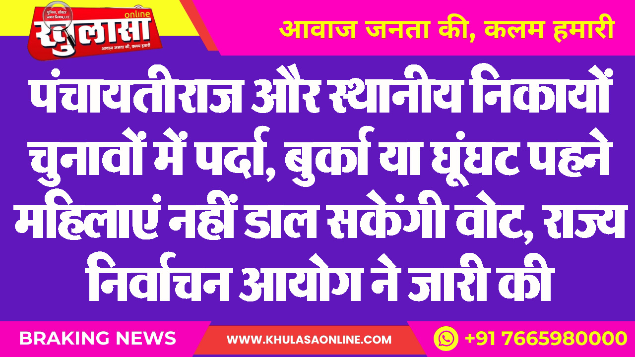 पंचायतीराज और स्थानीय निकायों चुनावों में पर्दा, बुर्का या घूंघट पहने महिलाएं नहीं डाल सकेंगी वोट, राज्य निर्वाचन आयोग ने जारी की गाइडलाइन