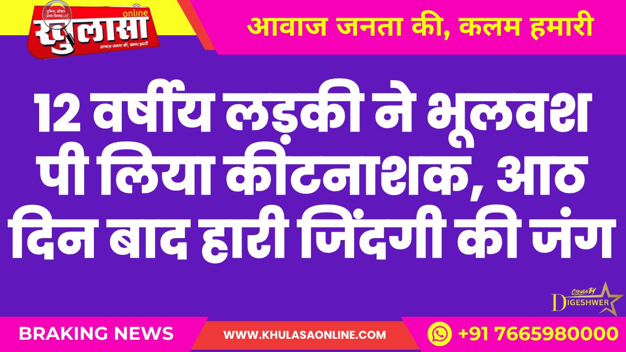 12 वर्षीय लड़की ने भूलवश पी लिया कीटनाशक, आठ दिन बाद हारी जिंदगी की जंग