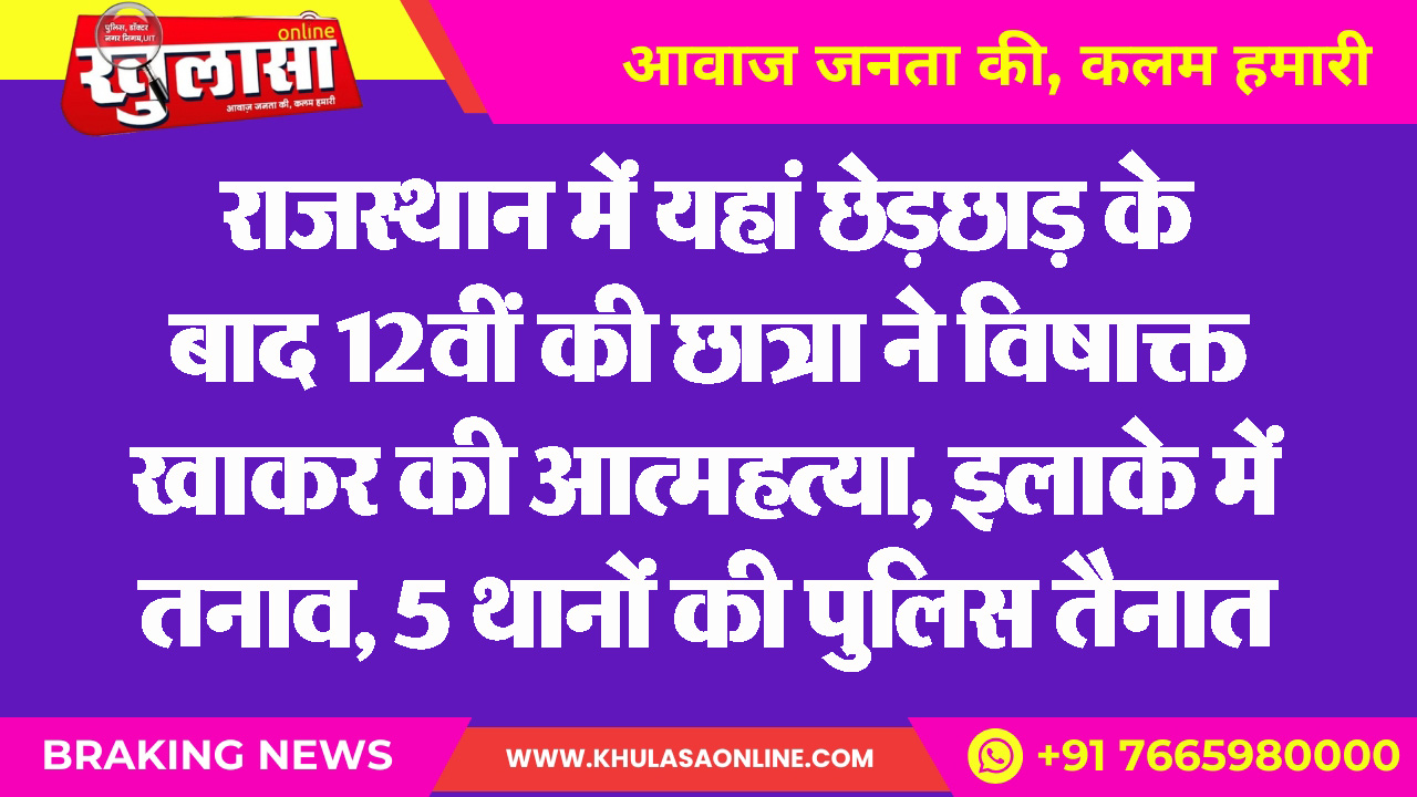 राजस्थान में यहां छेड़छाड़ के बाद 12वीं की छात्रा ने विषाक्त खाकर की आत्महत्या, इलाके में तनाव, 5 थानों की पुलिस तैनात
