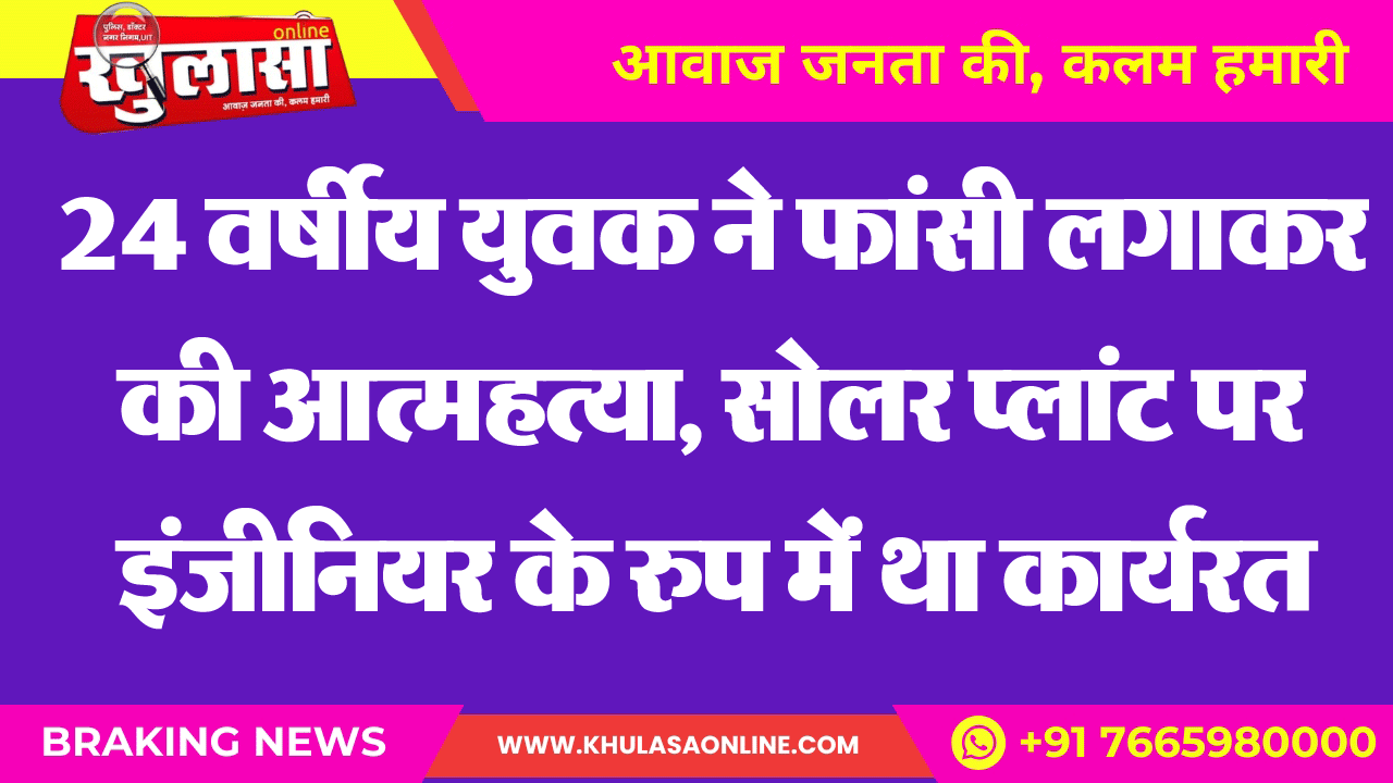 24 वर्षीय युवक ने फांसी लगाकर की आत्महत्या, सोलर प्लांट पर इंजीनियर के रुप में था कार्यरत