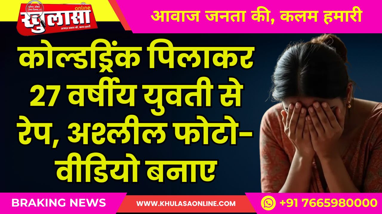 कोल्डड्रिंक पिलाकर 27 वर्षीय युवती से रेप, अश्लील फोटो- वीडियो बनाए