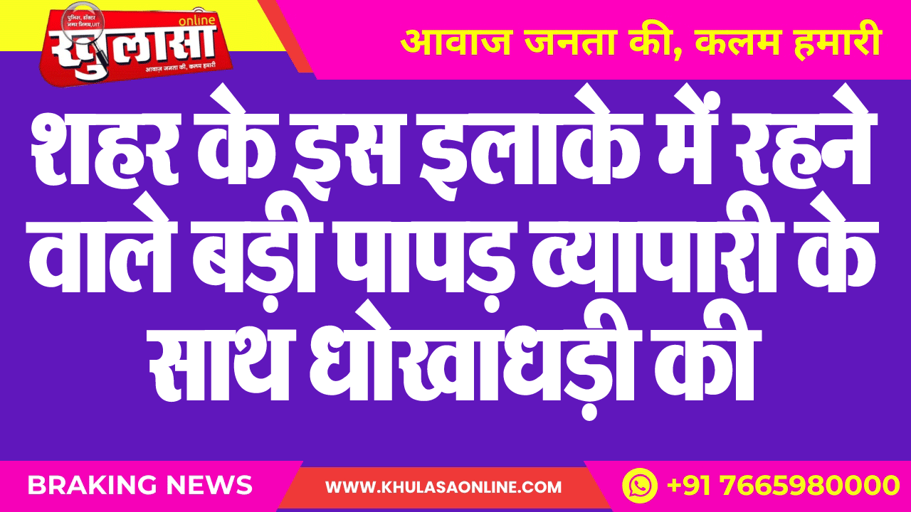 शहर के इस इलाके में रहने वाले बड़ी पापड़ व्यापारी के साथ धोखाधड़ी की