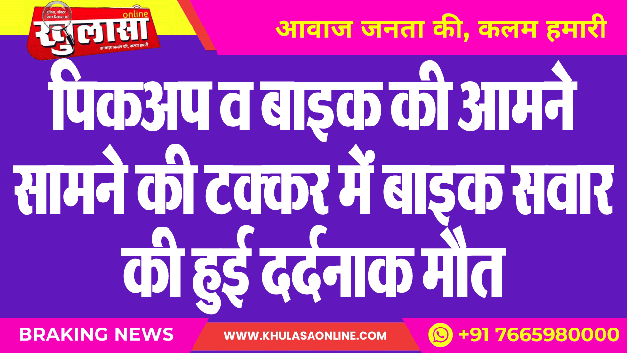 पिकअप व बाइक की आमने सामने की टक्कर में बाइक सवार की हुई दर्दनाक मौत