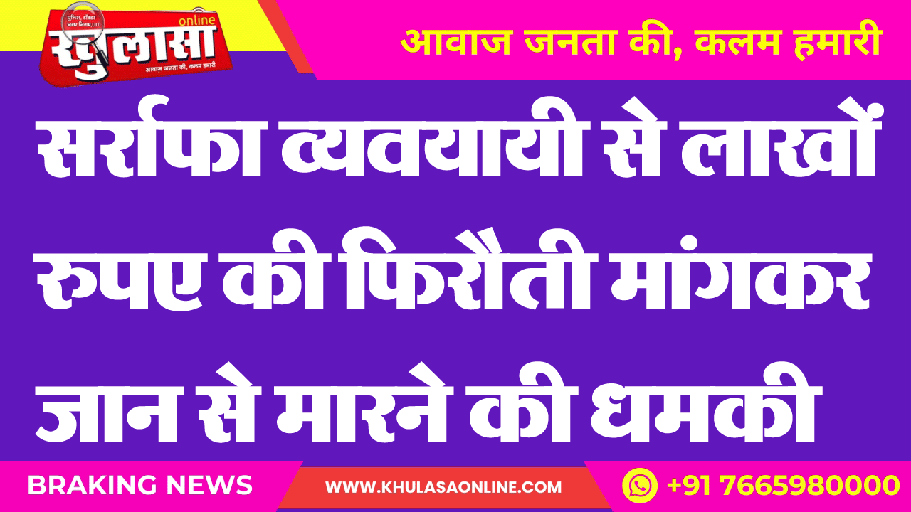 सर्राफा व्यवयायी से लाखों रुपए की फिरौती मांगकर जान से मारने की धमकी