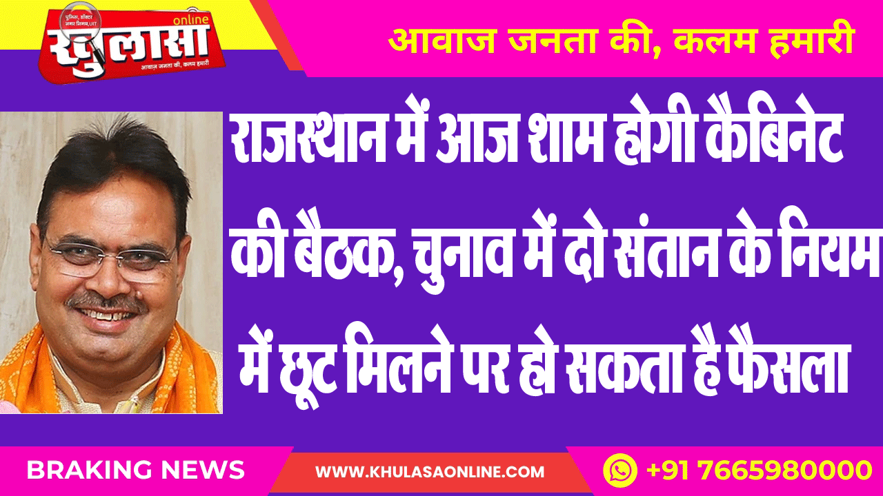 राजस्थान में आज शाम होगी कैबिनेट की बैठक, चुनाव में दो संतान के नियम में छूट मिलने पर हो सकता है फैसला