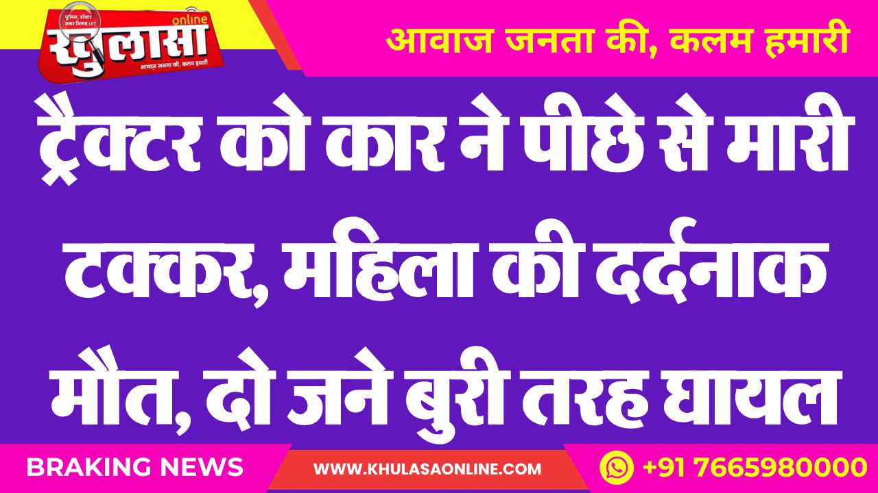 ट्रैक्टर को कार ने पीछे से मारी टक्कर, महिला की दर्दनाक मौत, दो जने बुरी तरह घायल