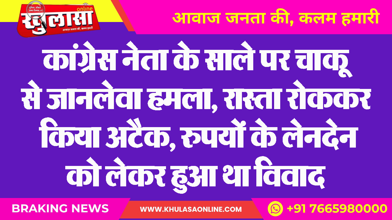 कांग्रेस नेता के साले पर चाकू से जानलेवा हमला, रास्ता रोककर किया अटैक, रुपयों के लेनदेन को लेकर हुआ था विवाद