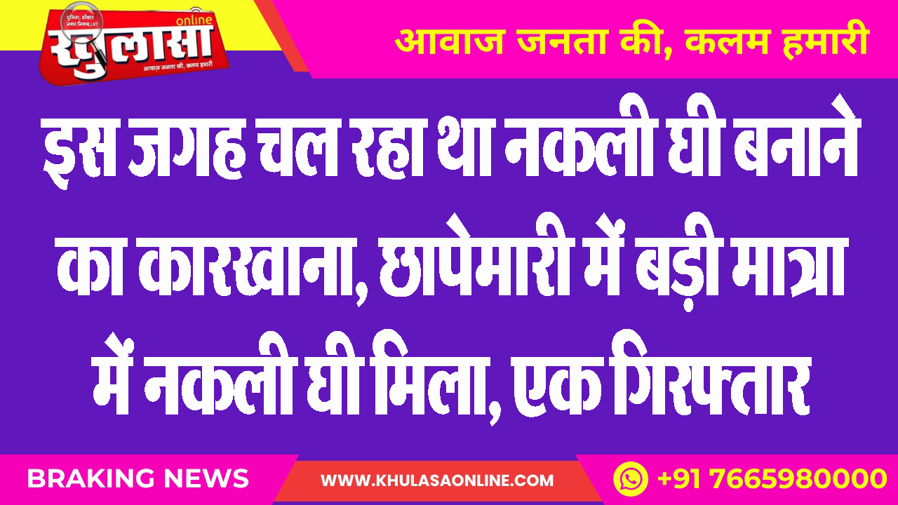 इस जगह चल रहा था नकली घी बनाने का कारखाना, छापेमारी में बड़ी मात्रा में नकली घी मिला, एक गिरफ्तार