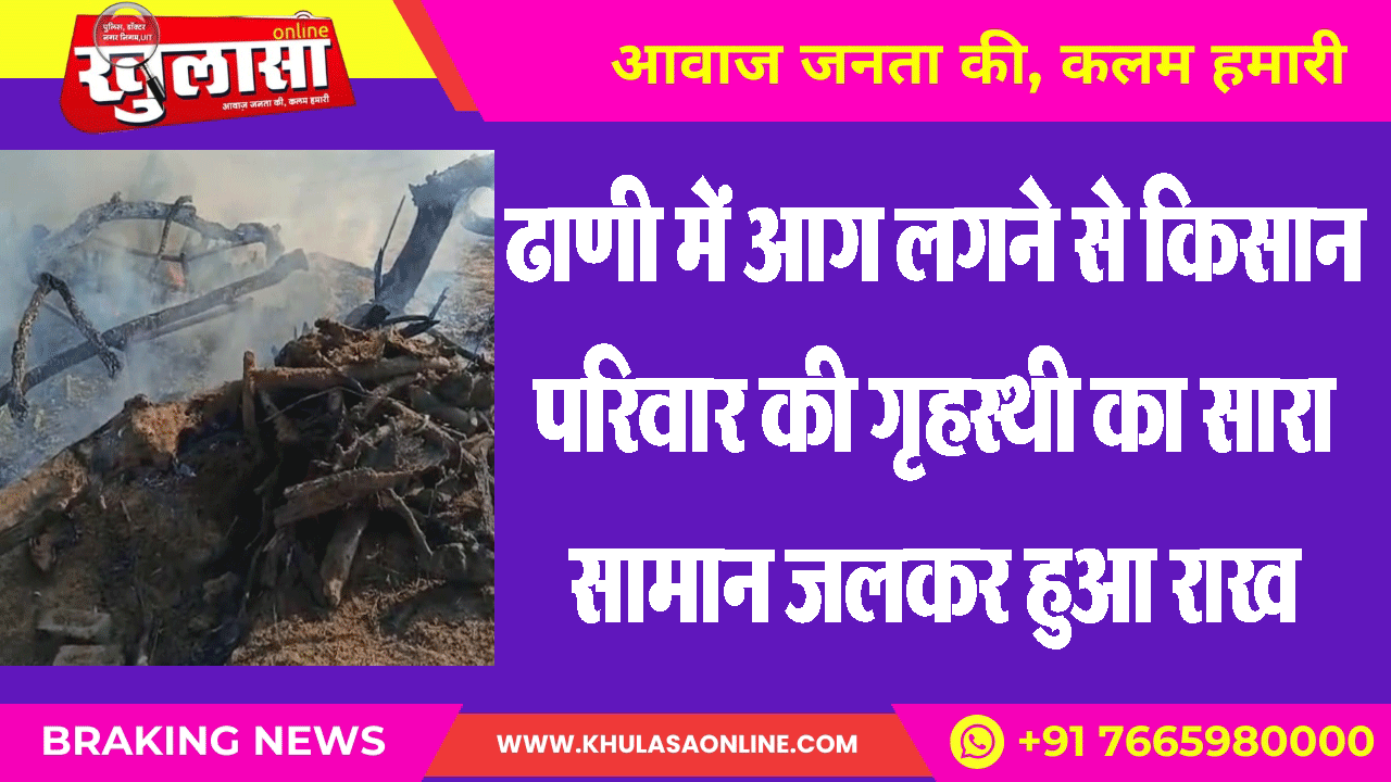 ढाणी में आग लगने से किसान परिवार की गृहस्थी का सारा सामान जलकर हुआ राख