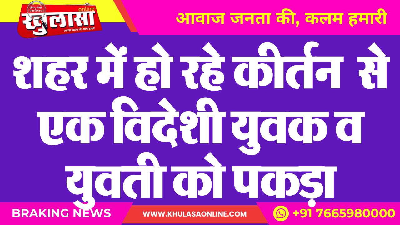 शहर में हो रहे कीर्तन से एक विदेशी युवक व युवती को पकड़ा