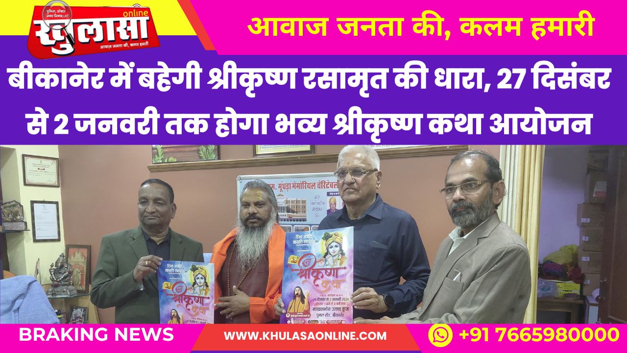 बीकानेर में बहेगी श्रीकृष्ण रसामृत की धारा, 27 दिसंबर से 2 जनवरी तक होगा भव्य श्रीकृष्ण कथा आयोजन