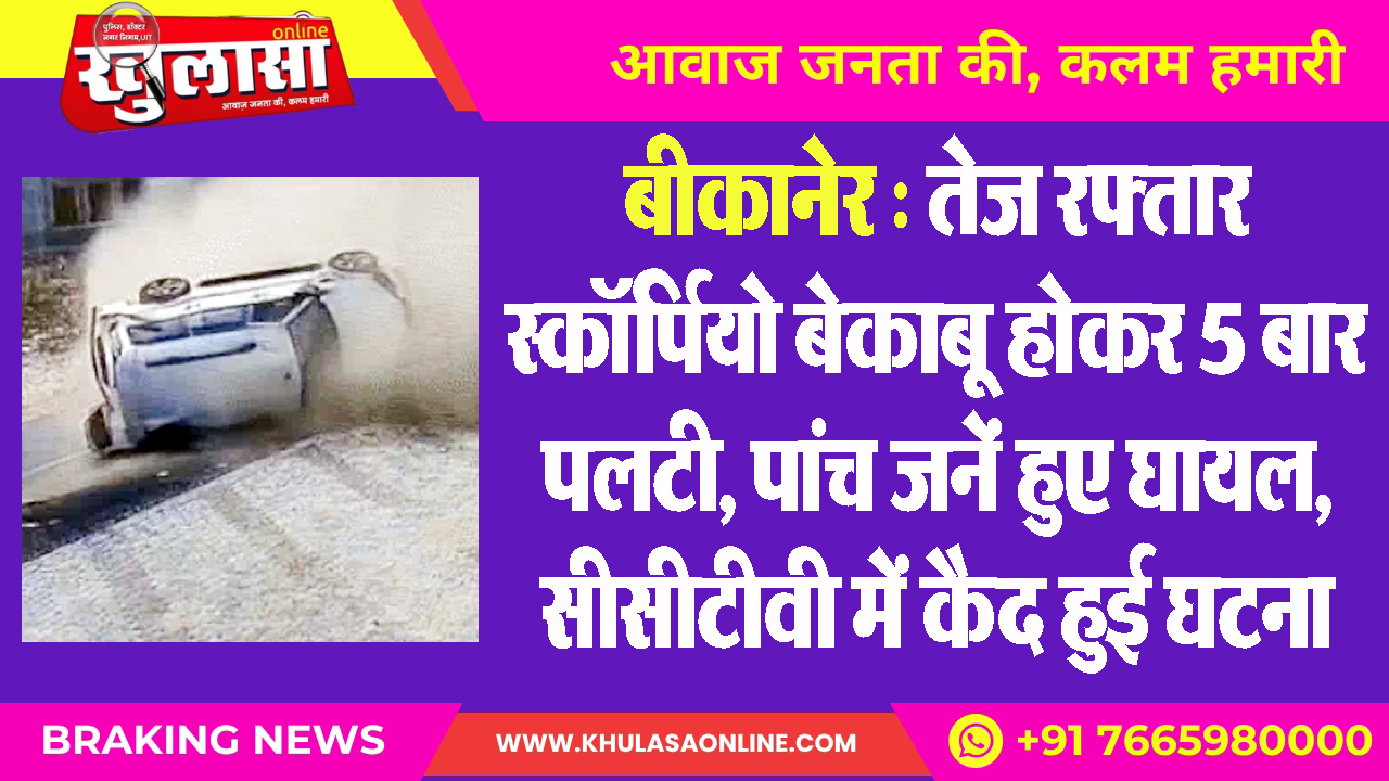 तेज रफ्तार स्कॉर्पियो बेकाबू होकर 5 बार पलटी, पांच जनें हुए घायल, सीसीटीवी में कैद हुई घटना