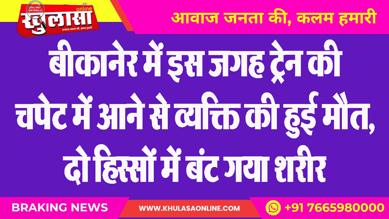 बीकानेर में इस जगह ट्रेन की चपेट में आने से व्यक्ति की हुई मौत, दो हिस्सों में बंट गया शरीर