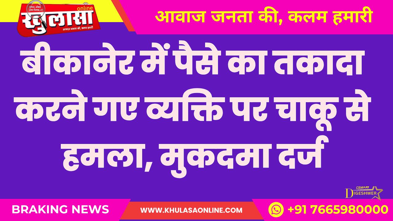 बीकानेर में पैसे का तकादा करने गए व्यक्ति पर चाकू से हमला, मुकदमा दर्ज
