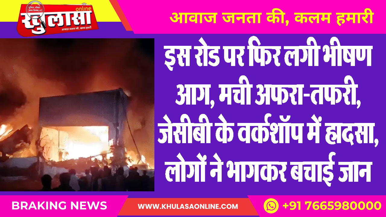 इस रोड पर फिर लगी भीषण आग, मची अफरा-तफरी, जेसीबी के वर्कशॉप में हादसा, लोगों ने भागकर बचाई जान