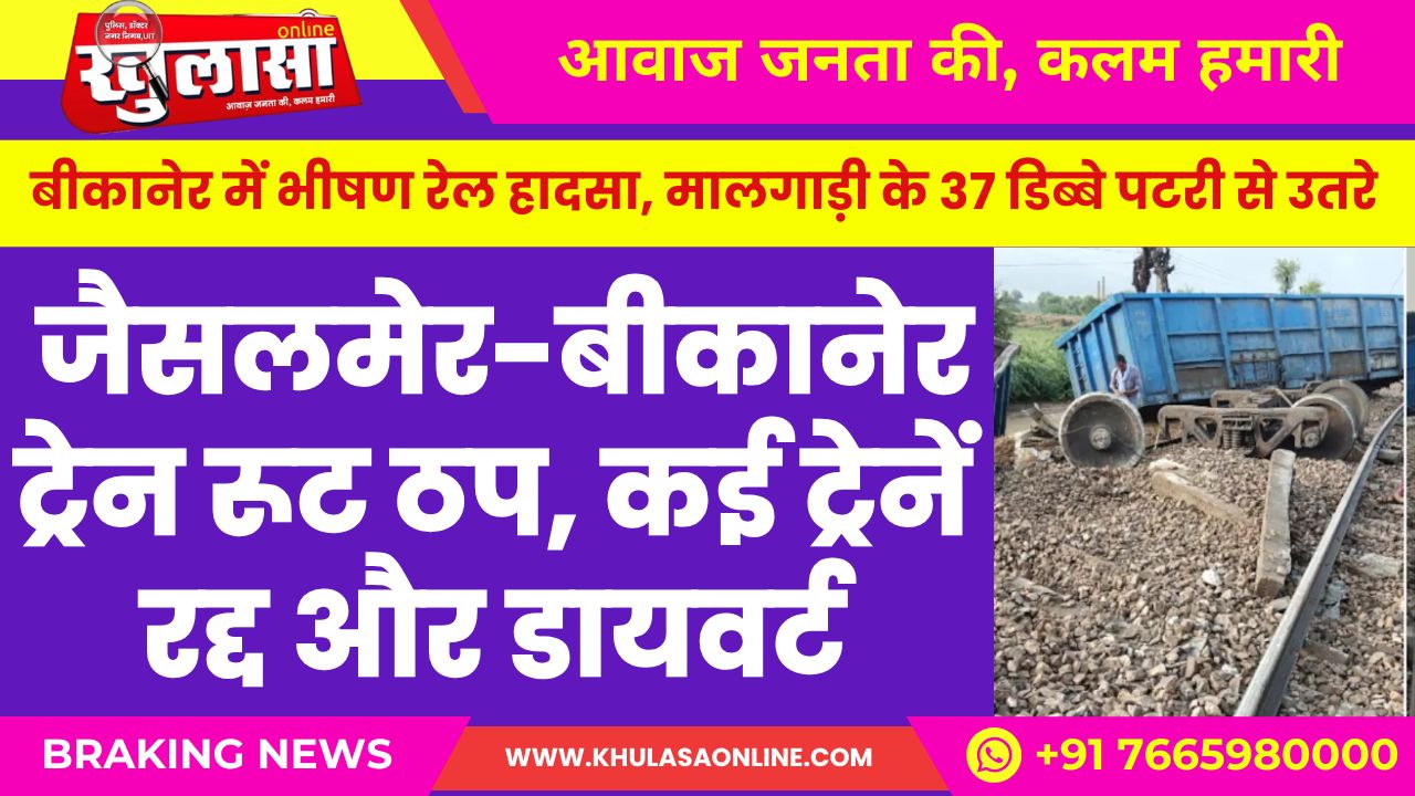 बीकानेर में भीषण रेल हादसा, मालगाड़ी के 37 डिब्बे पटरी से उतरे, जैसलमेर-बीकानेर ट्रेन रूट ठप, कई ट्रेनें रद्द और डायवर्ट