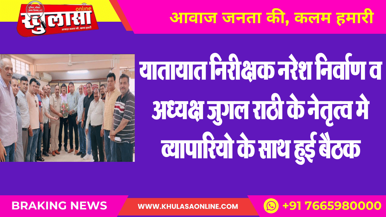 यातायात निरीक्षक नरेश निर्वाण व अध्यक्ष जुगल राठी के नेतृत्व मे व्यापारियो के साथ हुई बैठक