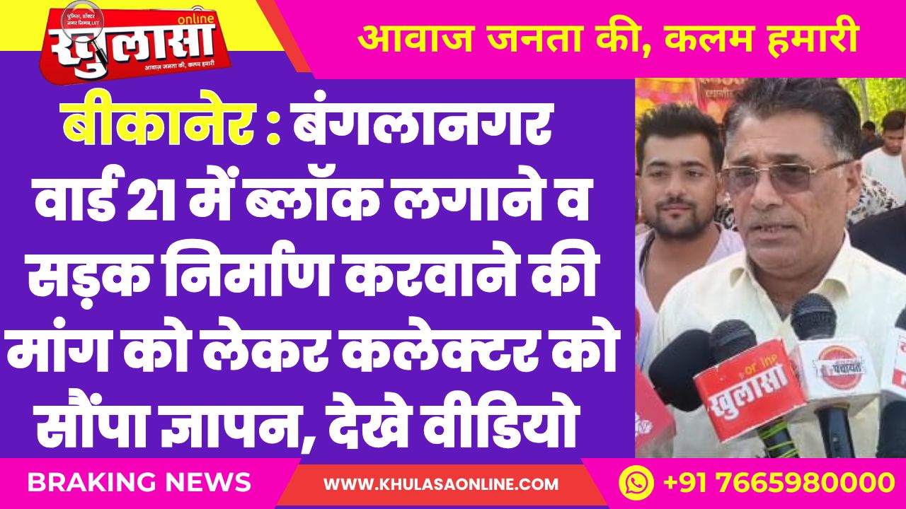 बीकानेर: बंगलानगर वार्ड 21 में ब्लॉक लगाने व सड़क निर्माण करवाने की मांग को लेकर कलेक्टर को सौंपा ज्ञापन, दिया धरना