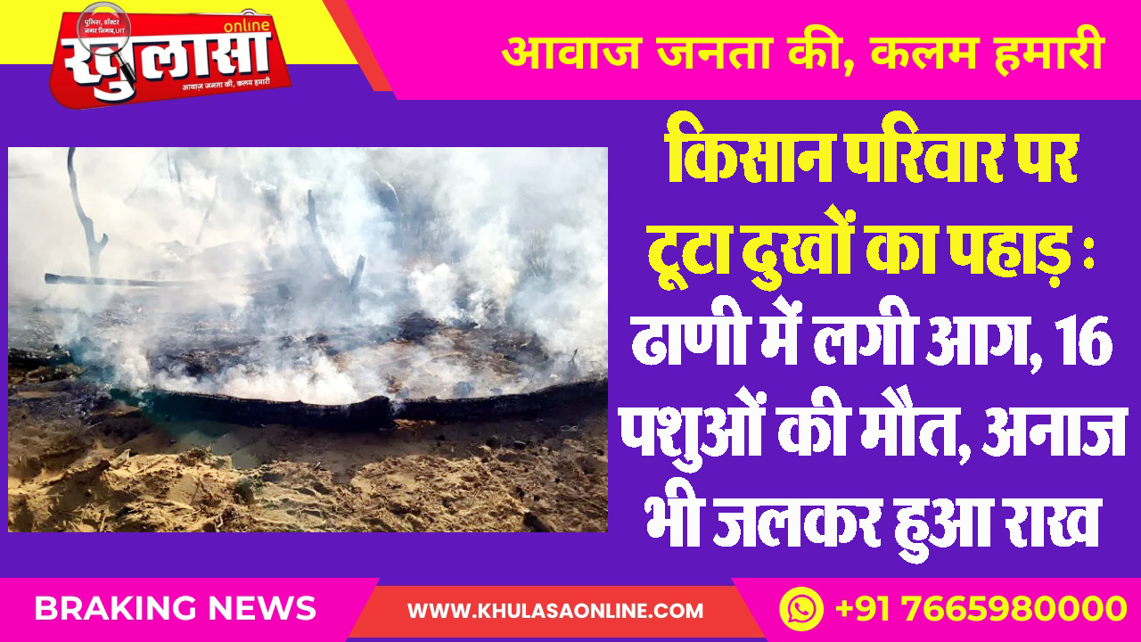 किसान परिवार पर टूटा दुखों का पहाड़ : ढाणी में लगी आग, 16 पशुओं की मौत, अनाज भी जलकर हुआ राख