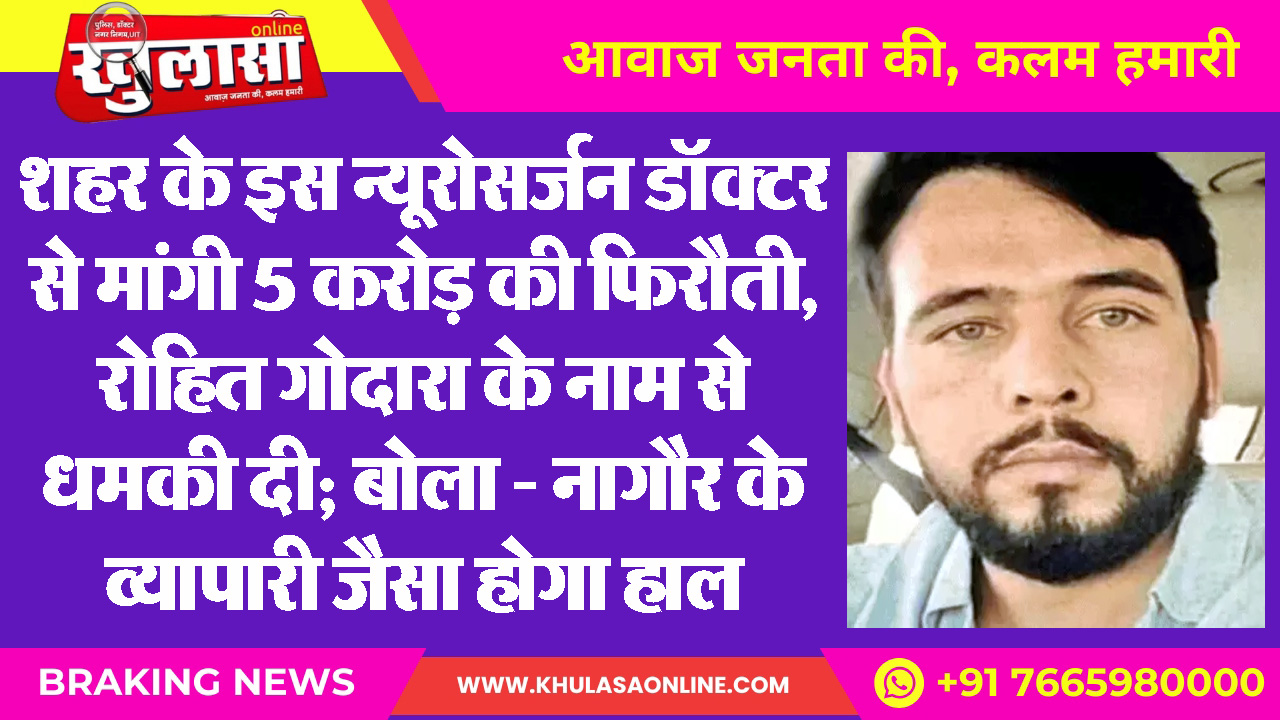 शहर के इस न्यूरोसर्जन डॉक्टर से मांगी 5 करोड़ की फिरौती, रोहित गोदारा के नाम से धमकी दी; बोला – नागौर के व्यापारी जैसा होगा हाल