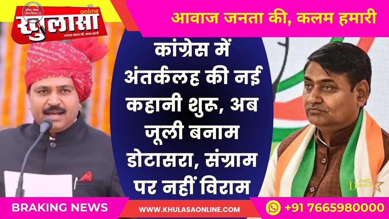 खुलासा न्यूज़। कांग्रेस में अंतर्कलह की नई कहानी शुरू हो गई है। अशोक गहलोत और पायलट के बीच खींचतान के बाद अब प्रदेशाध्यक्ष गोविंद सिंह डोटासरा और नेता प्रतिपक्ष टीकाराम जूली के बीच अंतर्कलह छिड़ गई है। कांग्रेस के अंतर्कलह के इस पार्ट-2 की शुरुआत तो वैसे तीन-चार माह पहले ही हो गई थी, लेकिन पिछले दिनों विधानसभा में हुए हंगामे के बाद यह परवान पर चढ़ी।