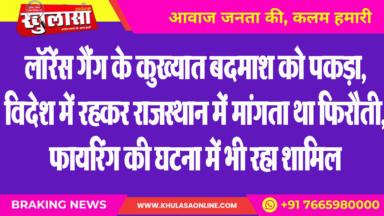 लॉरेंस गैंग के कुख्यात बदमाश को पकड़ा, विदेश में रहकर राजस्थान में मांगता था फिरौती, फायरिंग की घटना में भी रहा शामिल