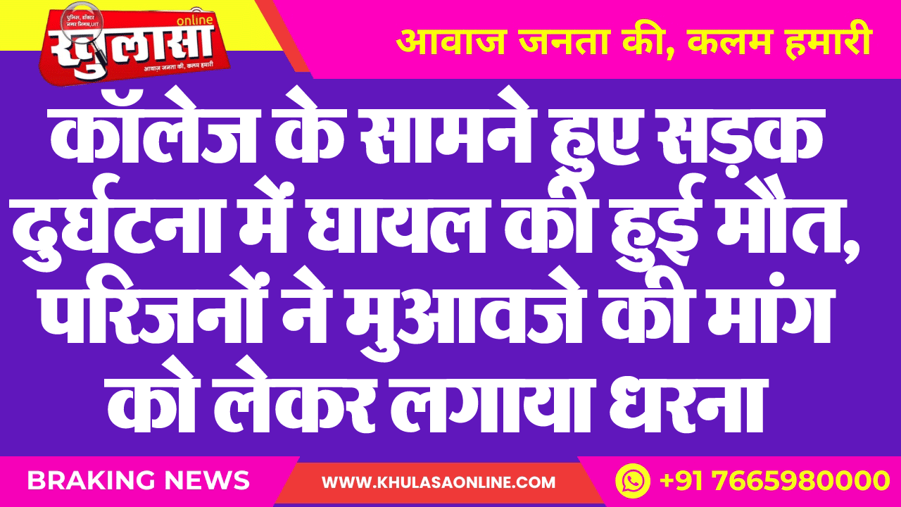 कॉलेज के सामने हुए सडक़ दुर्घटना में घायल की हुई मौत, परिजनों ने मुआवजे की मांग को लेकर लगाया धरना
