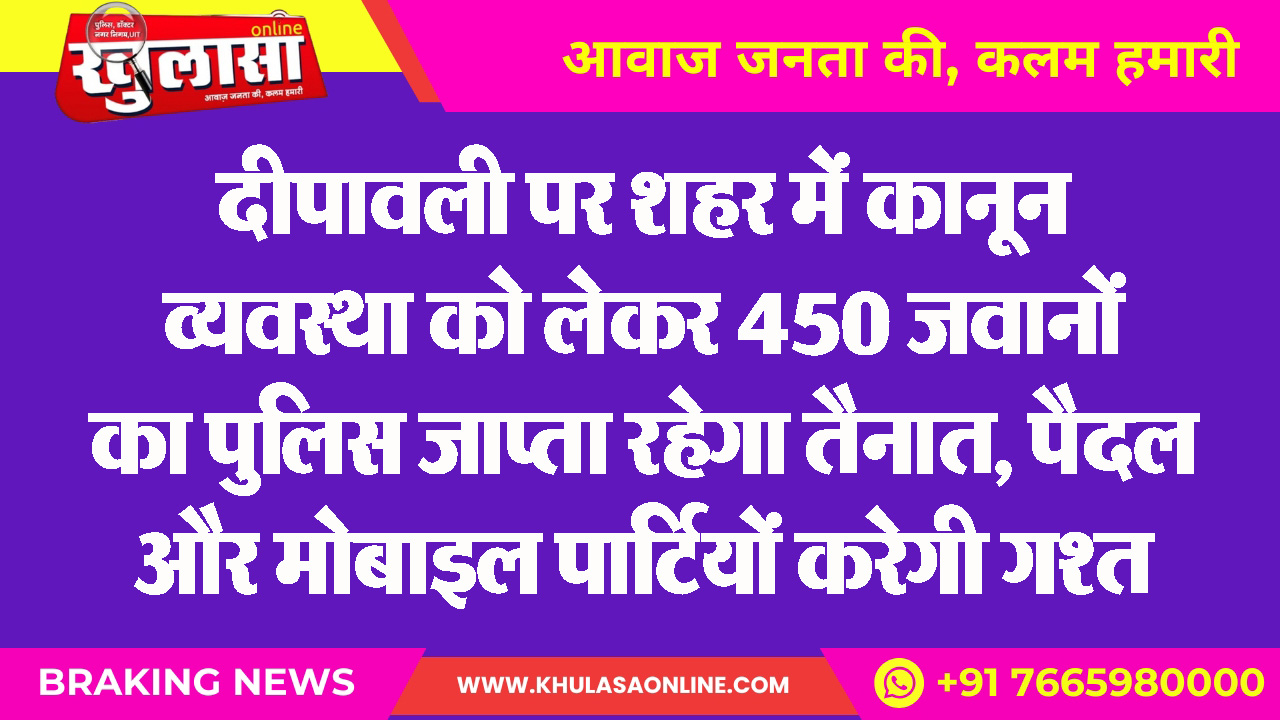 दीपावली पर शहर में कानून व्यवस्था को लेकर 450 जवानों का पुलिस जाप्ता रहेगा तैनात, पैदल और मोबाइल पार्टियों करेगी गश्त